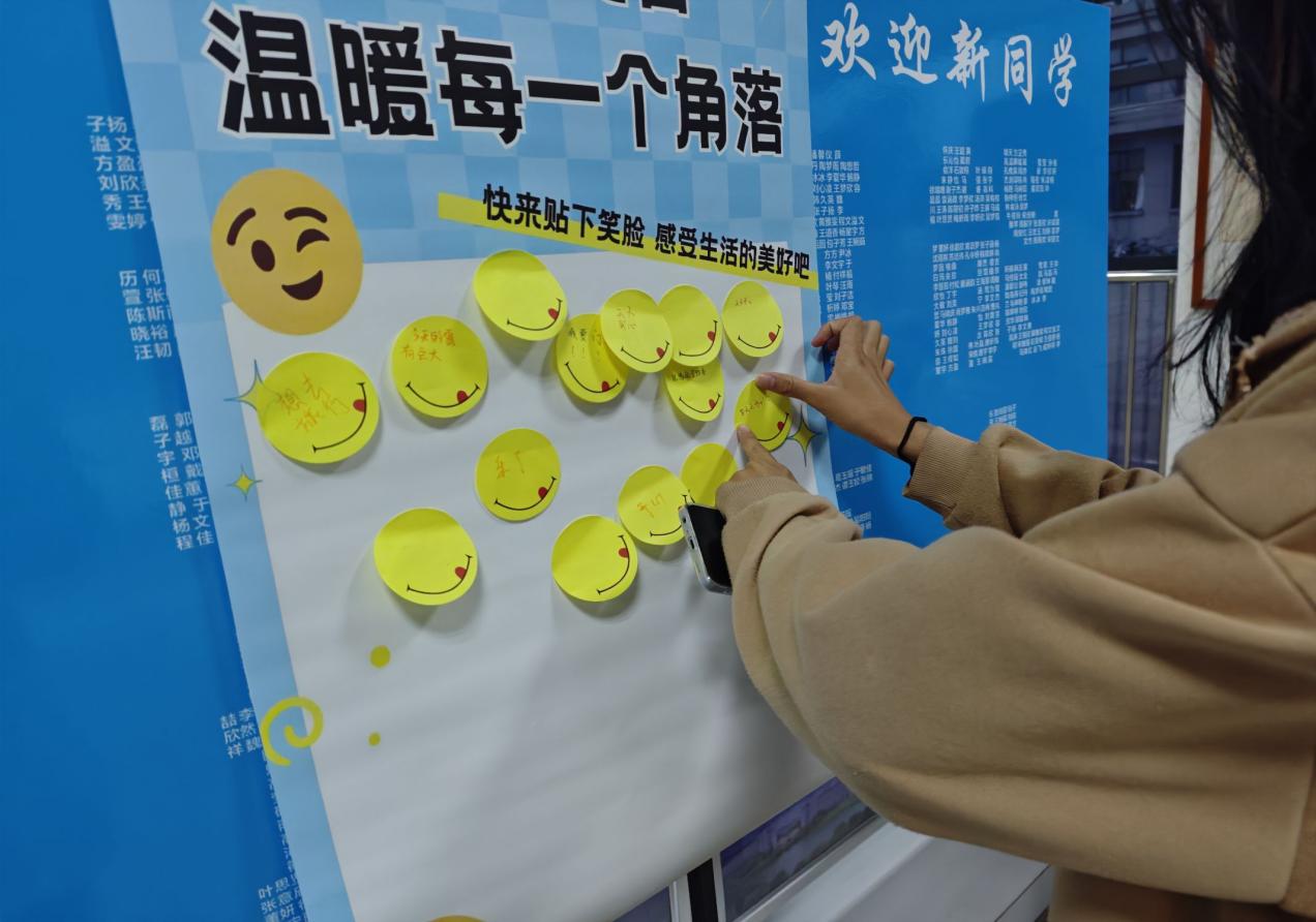 细腻深刻的文字、趣味生动的表情包、温暖治愈的简笔笑脸……随着线笔轻轻勾勒,68张笑脸一一浮现,空白的展板逐渐被笑脸填满,这一张张笑脸传递着温暖,也承载了同学们对未来的美好期待。(撰稿:刘俊丽 夏新 摄影:徐嘉欣 审核:黄建平)