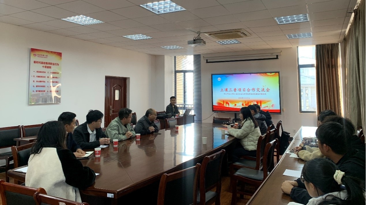 2024年11月27日,云南省西南有色昆明勘测设计院陈闽昆工程师一行来公司就云南市兰坪县的土壤“三普”项目开展合作对接交流。太阳成tyc122cc集团经理汪德进、相关项目负责人及部分地理科学专业师生参加对接会。