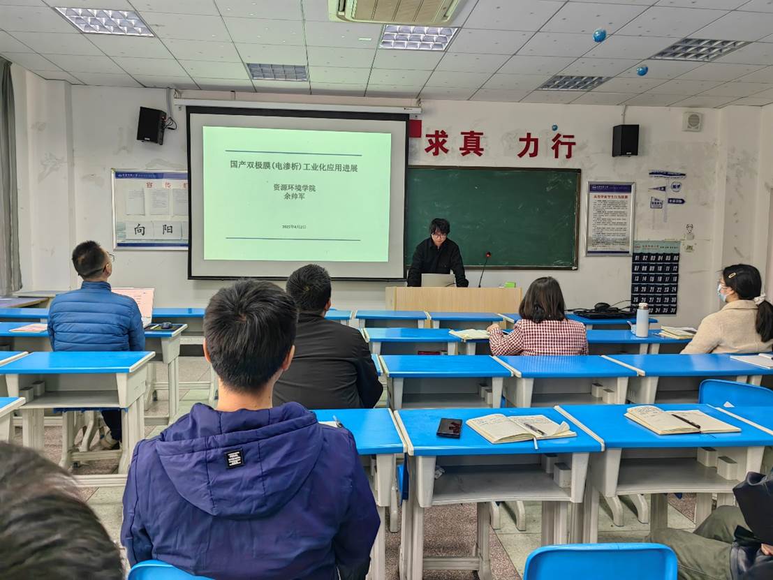 2025年4月2日星期三,太阳成tyc122cc集团太阳成tyc122cc集团环境工程教师党支部于4月2日成功举办"生态环保学术沙龙"特色党日活动。活动聚焦绿色技术前沿,邀请青年博士余帅军作题为《国产双极膜(电渗析)工业化应用进展》的专题报告,环境工程党支部教研室十余名骨干教师参与研讨,共同探索"双碳"目标下膜技术的创新突破路径。
