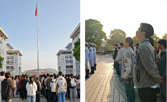 “当国旗升起,爱国之情油然而生。作为新时代老员工,我深感责任重大。未来求学道路中,我们应当秉持勤学笃行、自强不息的态度,将专业知识与国家现实需求紧密结合,在新征程道路上交上一份满意的答卷。”2023级环境科学(1)班的彭欣月说道。
