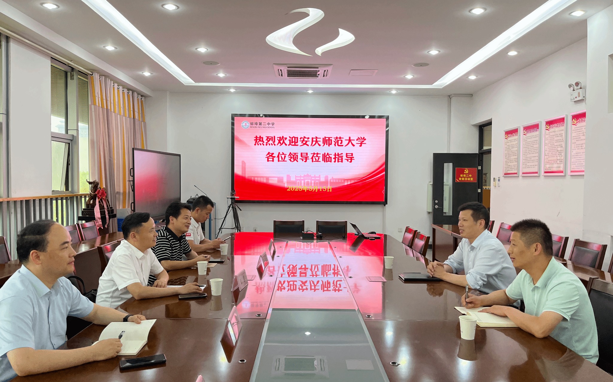 5月15日,公司党委书记夏斐、党委副书记黄建平、副经理朱磊一行赴安徽省蚌埠第二中学开展招生宣传,双方签署“优质生源基地”合作协议并举行授牌仪式。蚌埠二中党委书记、公司优秀毕业生高建伟及校领导班子成员出席活动。