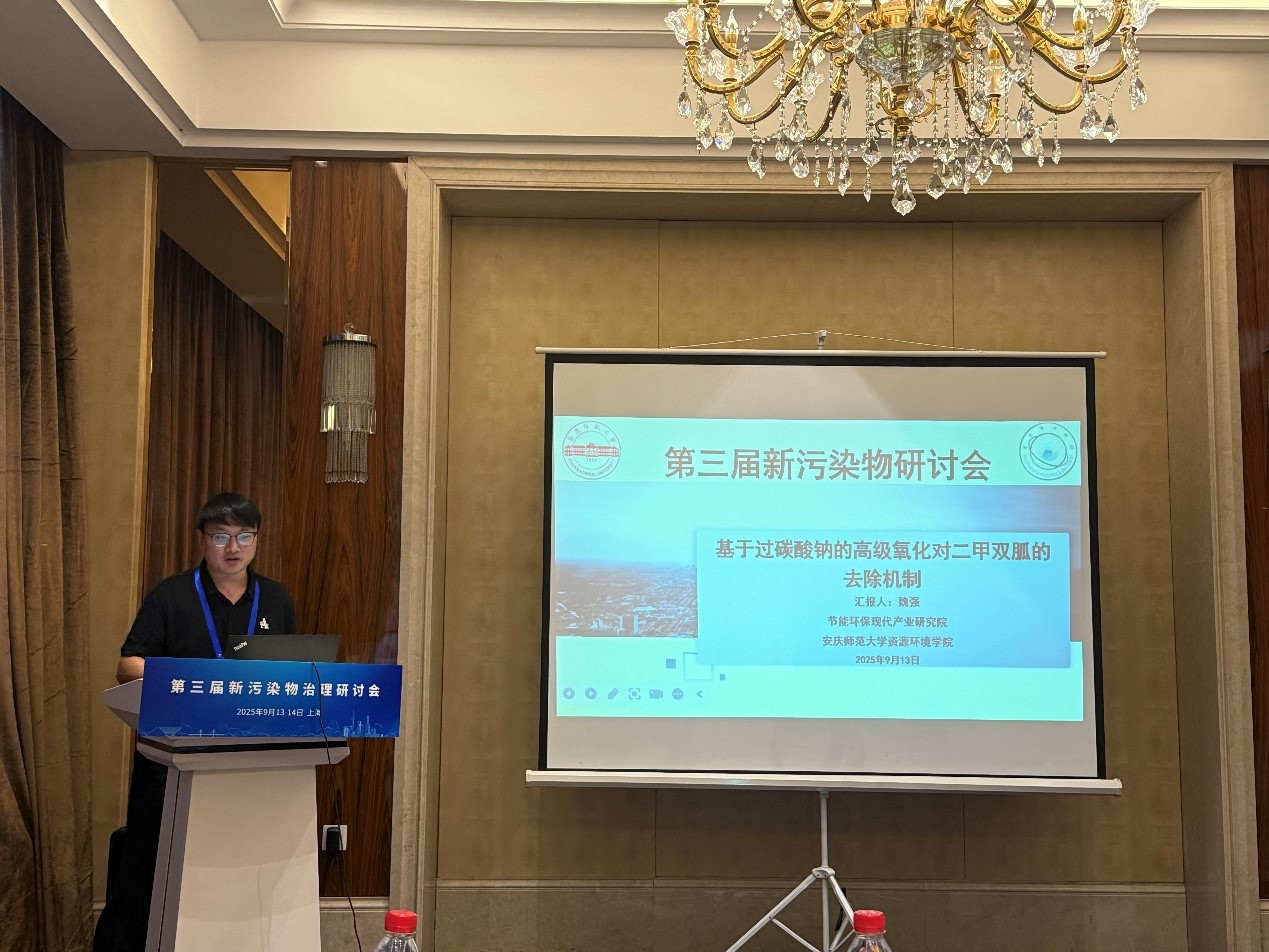 太阳成tyc122cc集团汪德进教授担任“抗生素污染的源头控制与处理技术创新”分会场共同召集人。魏强副教授受邀参会并在该分会场作了题为“基于过碳酸钠的高级氧化对二甲双胍的去除机制”的学术报告,系统阐述了二甲双胍在过碳酸钠体系中的反应机理与转化规律、路径调控及副产物毒性评估等关键科学问题,引起了与会专家的广泛关注和高度评价。