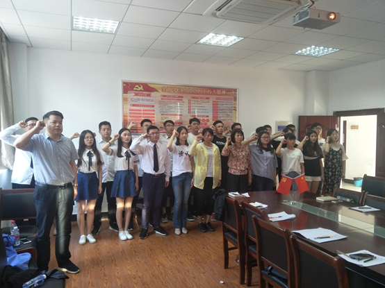 会议最后,全体党员面对鲜红的党旗,重温入党誓词,庄严宣誓,再一次接受党性的洗礼。