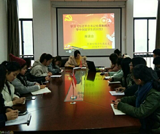 1月2日上午,公司团总支在F316召开学习《习近平总书记给莫斯科大学中国职工的回信》座谈会,院团总支成员和各班级团支书参加座谈会,会议由团总支负责人程亚运主持。