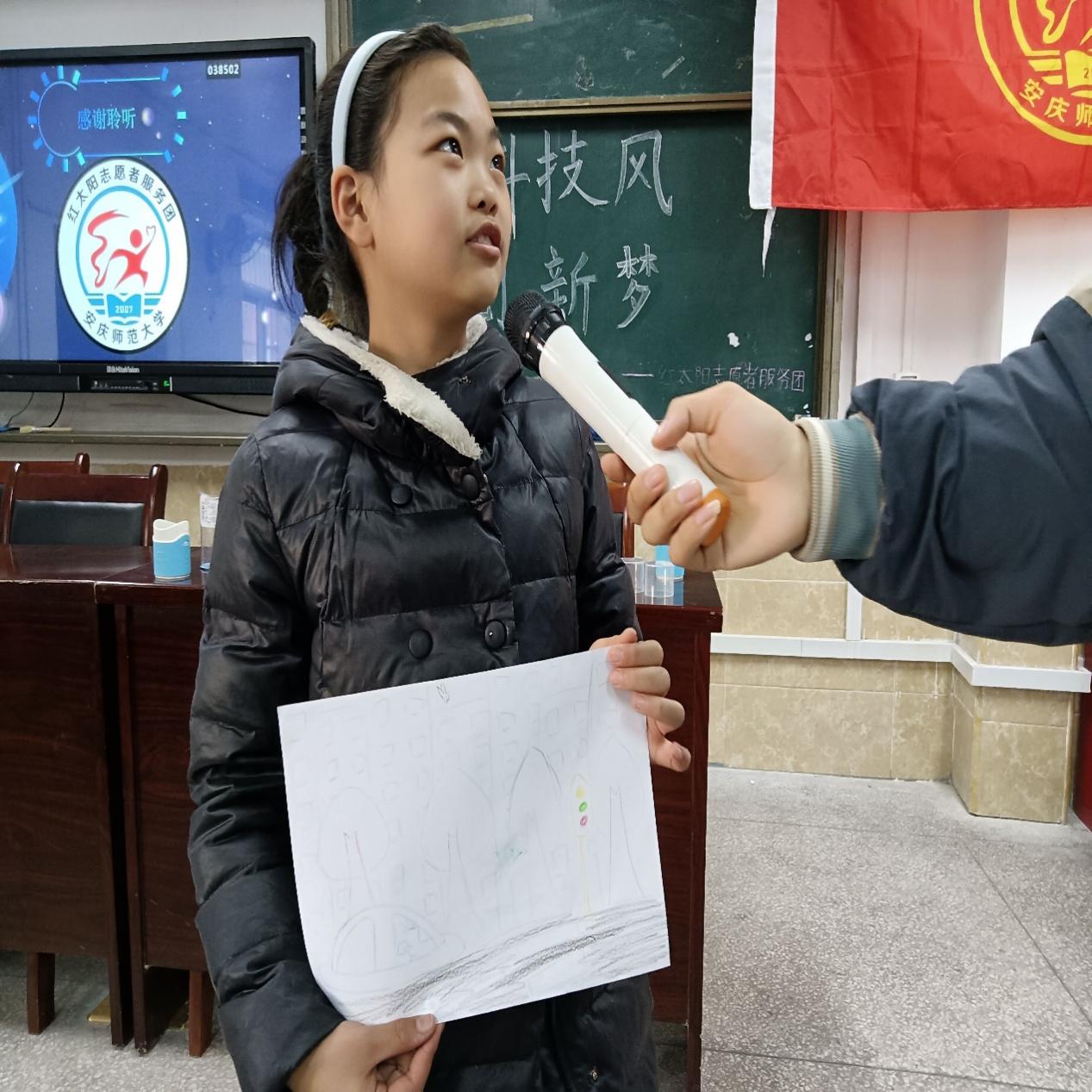 为拓展员工想象力,巩固所学知识,培养他们的科学兴趣,主讲人组织员工开展“畅想未来”绘画活动,由志愿者带领员工描绘出自己心中的未来模样,“我认为在未来人工智能会极大程度服务人类,让人类的生活更加便捷。”其中马玉龙同学这样解释自己的作品。
