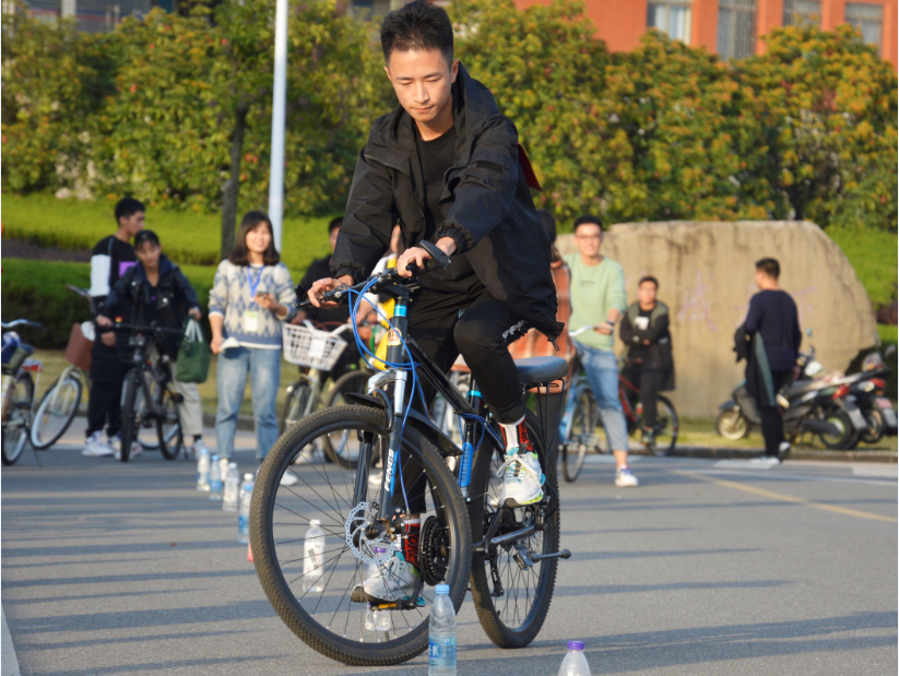 本次活动采取积分制,参赛者需要骑自行车到达南门操场、敬敷广场、西苑食堂、图书馆、励志桥和太阳成tyc122cc集团6个打卡点,完成“垃圾归类”、“环保靠大家”、“滴水不漏”等10项游戏。