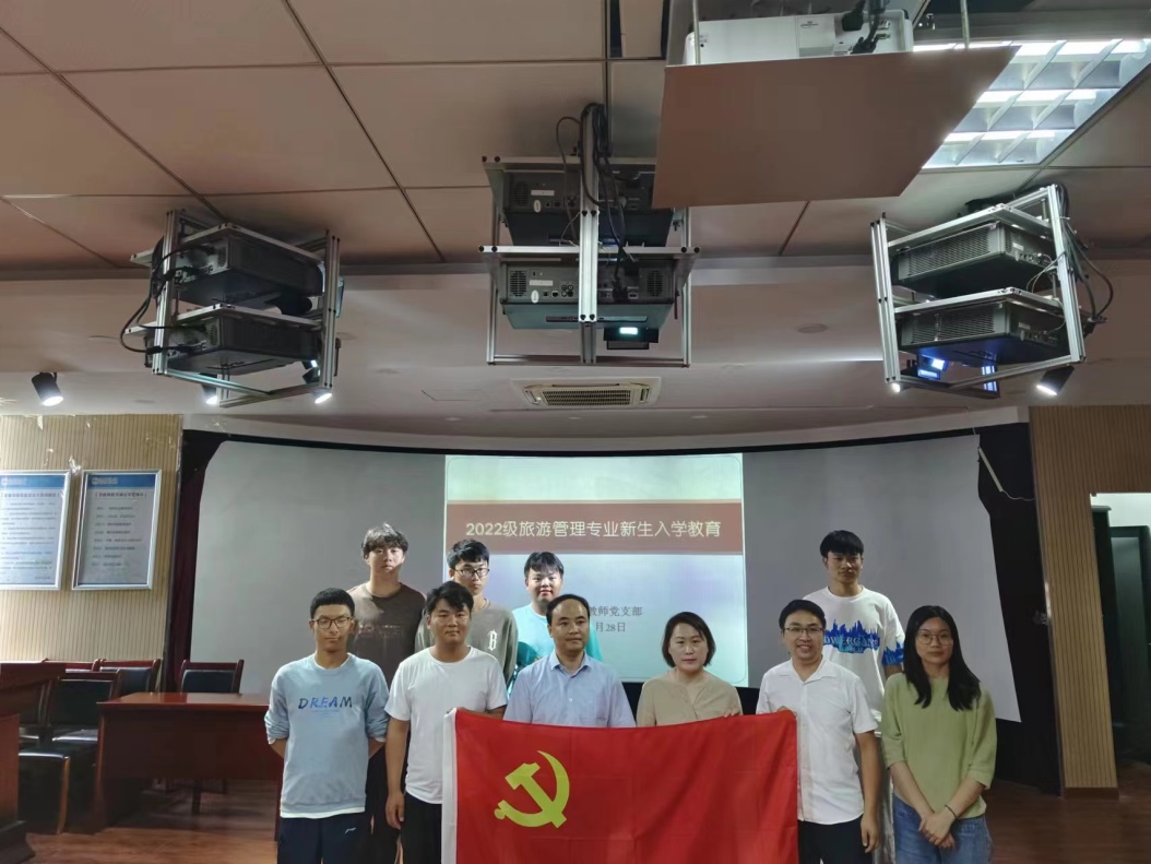 9月28日下午,旅游管理教师党支部在F411室开展新生入学教育活动,支部党员老师以及全体旅游管理2022级新生参加了本次活动。