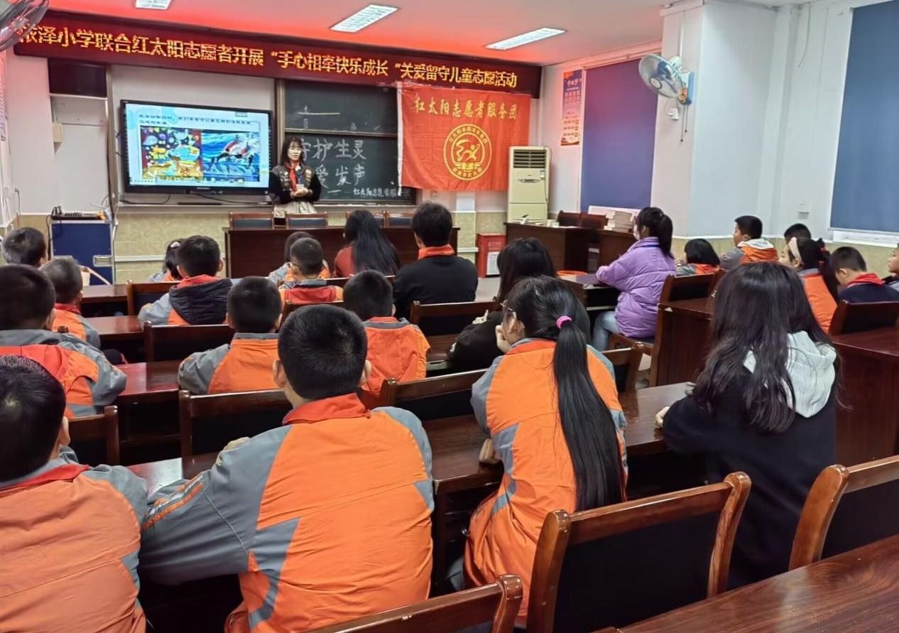 志愿者用生动翔实的语言,图文并茂地给孩子们介绍了保护动物的相关知识,鼓励大家以身作则,将保护动物落实到行动中。