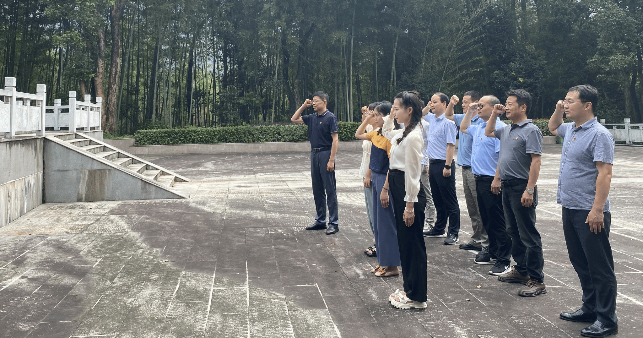 在矗立的人民英雄纪念碑前,全体人员鞠躬致敬,肃立默哀,重温入党誓词,追忆革命先烈艰苦奋斗,不怕牺牲的斗争精神,表达对革命英雄的缅怀和敬仰。