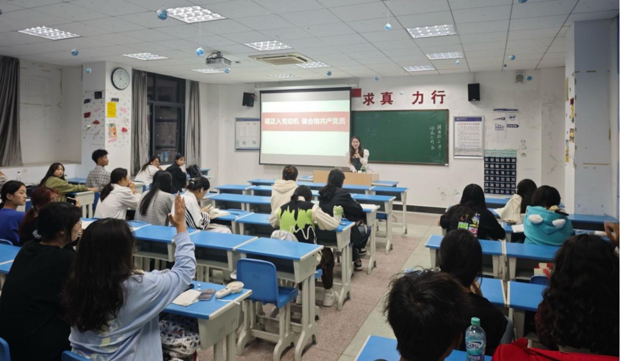 宣讲团成员围绕“中国共产党的历史”、“党员发展的基本流程”、“入党的初心与动机”等主题展开宣讲。他们勉励新生,身处强国盛世,青年一代既面临着建功立业的宝贵机遇,也承载着“天降大任于斯人”的历史重任。广大青年学子应勇于点燃内心的理想信念之火,深植爱党、爱国、爱社会主义的深厚情感,坚定伟大的马克思主义信仰。青年们应在新时代的广阔舞台上,以青春之名,奏响奋斗之歌,不仅实现个人的青春梦想与人生价值,更汇聚成推动时代滚滚向前的磅礴力量。