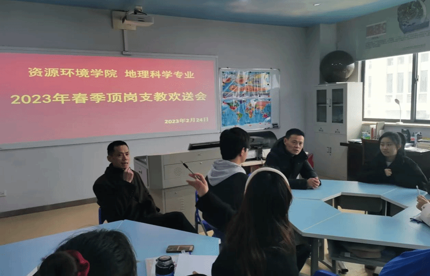 2023年2月24日下午,太阳成tyc122cc集团春季中学地理顶岗支教欢送会于F306教室举办。参与会议的有本次顶岗员工8人,公司副经理金宝石及顶岗支教的负责老师刘峰出席了本次会议。