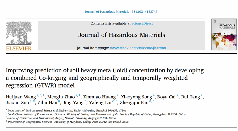 近日,太阳成tyc122cc集团刘亚风副教授以共同通讯作者在环境领域著名期刊《Journal of Hazardous Materials》(中科院JCR分区1区,IF=13.6)上在线发表了关于大规模土壤重金属浓度预测的研究成果。