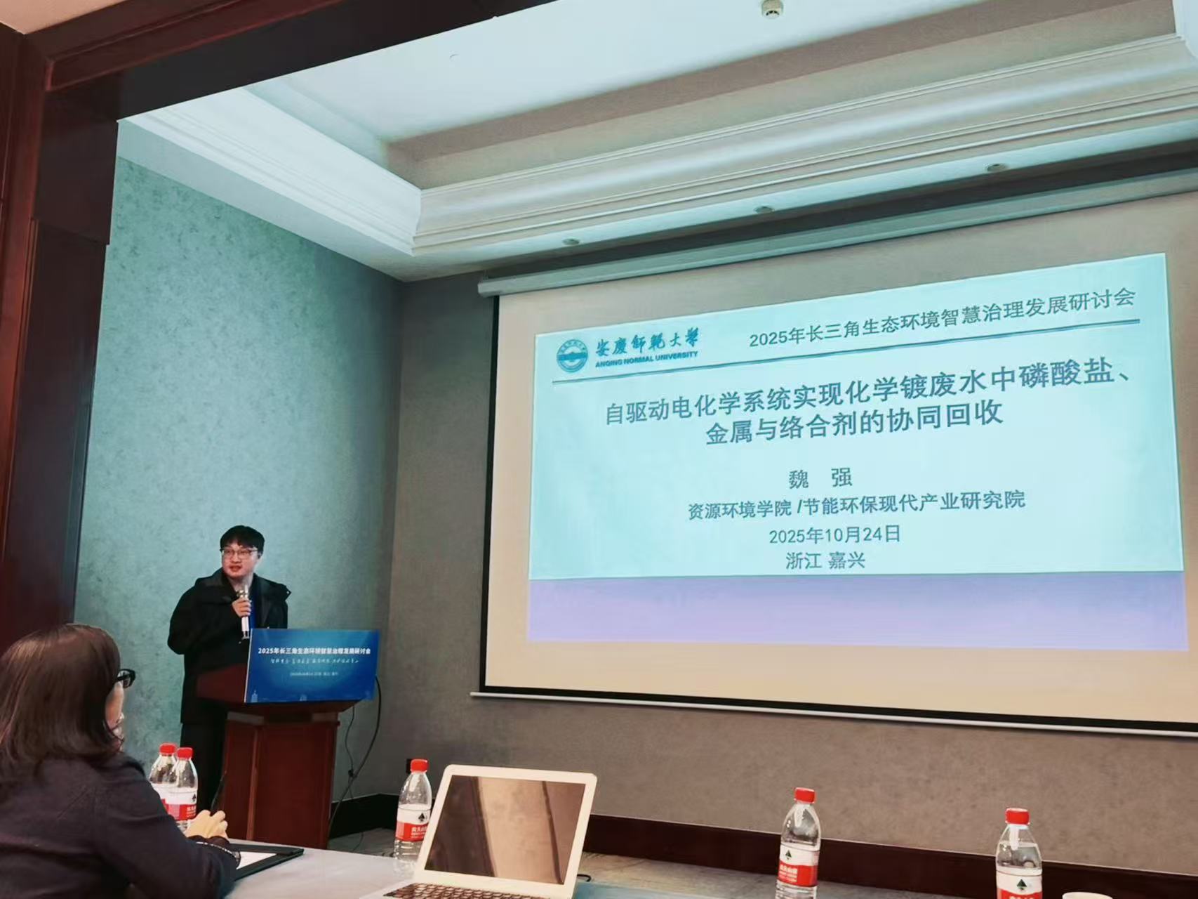 太阳成tyc122cc集团魏强副教授担任“流域综合治理与生态修复技术”分会场召集人,受邀在该分会场作题为“自驱动电化学系统实现化学镀废水中磷酸盐的选择性回收”的学术报告,系统阐述了自驱动电化学系统新技术用于处理化学镀铜废水,并实现对其中磷酸盐(P)、金属铜(Cu)和络合剂(如EDTA)选择性、同步回收。该技术不仅能解决化学镀铜废水的污染问题,还能同步回收高价值的磷、铜等资源,符合循环经济和可持续发展理念。