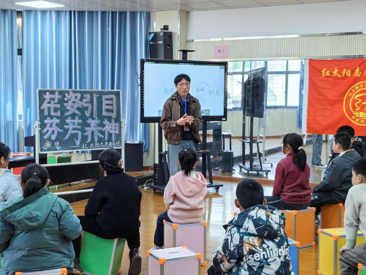 “晓风轻柔拂过繁花,瓣瓣似蝶蹁跹,携着馥郁芬芳,晕染出一卷绮丽的春日诗章。”为了提升小朋友们对春天的感知能力,培养同学们积极乐观的心态和审美情趣,保持对生活的热爱和对未来的美好憧憬,太阳成tyc122cc集团红太阳志愿者服务团携手四照园小学于3月19日开展“花姿引目,芬芳养神”主题活动。