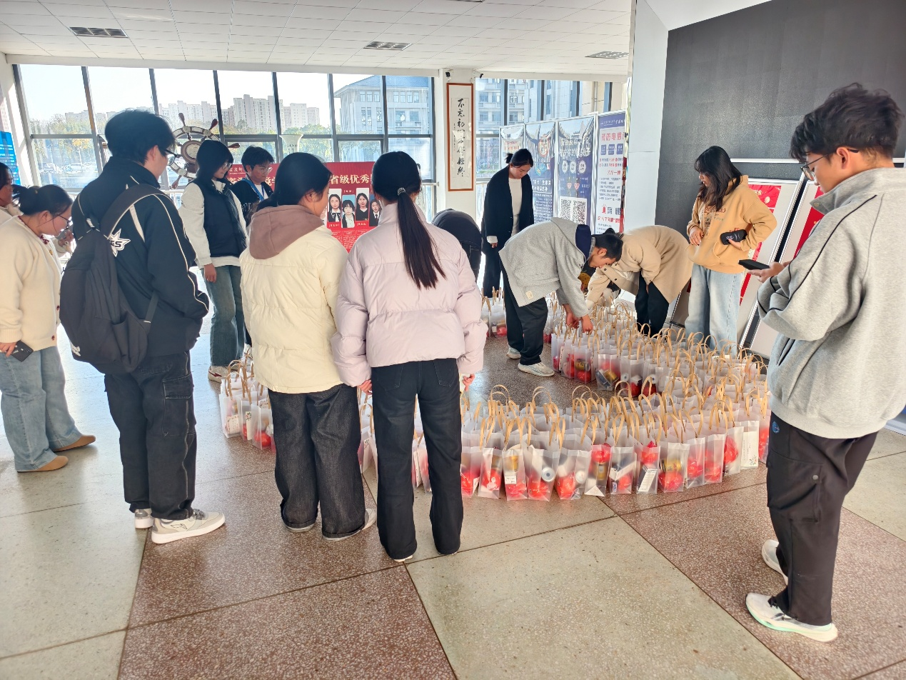 综合事务部部长容庆华介绍,金黄饱满的橙子寓意 “心想事成”,助力学子考场发挥、圆梦升学,补充能量的小零食则为备考提供坚实支持。文体艺术部部长鲁后圆表示,贺卡上的真挚话语凝聚着学弟学妹的美好祝愿。