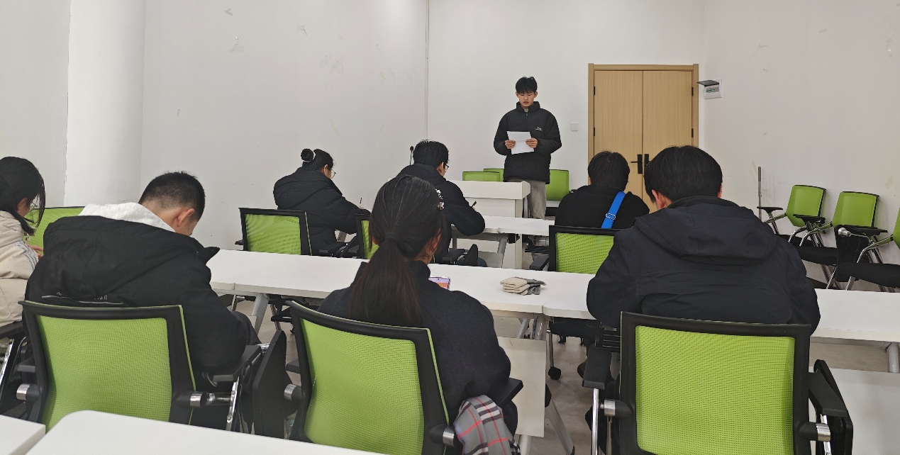 活动现场,任鑫龙、孙佳乐两名同学聚焦《论中国共产党历史》,围绕 “江山就是人民,人民就是江山” 的深刻论断分享研读心得,在深情朗诵中传递出对党的百年奋斗历程的敬畏与思考;张文洋同学结合自身成长经历,阐释青年与党的血脉联系,平实真挚的叙述引发在场学子强烈共鸣。