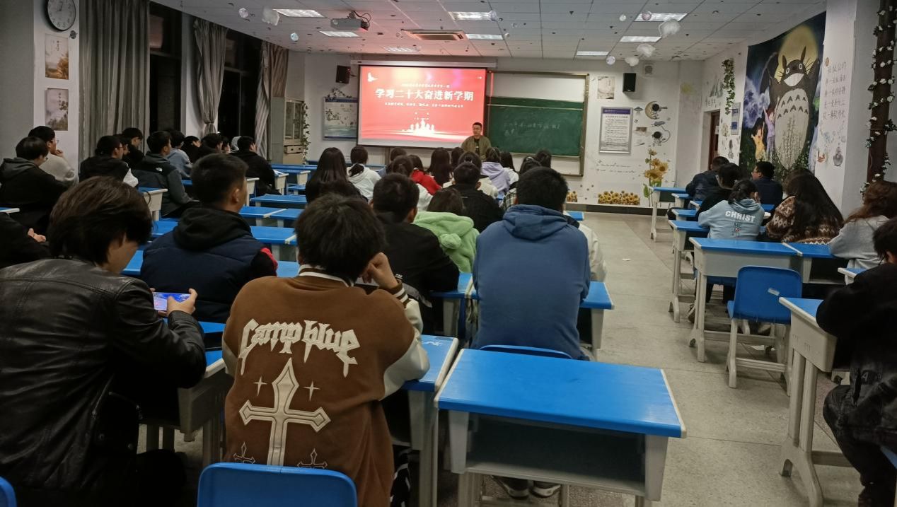 3月6日晚,2022级太阳成tyc122cc集团环境与工程类三班四班在F楼207教室,在辅导员陈诚老师的带领下,召开了关于“学习党的二十大,奋进新学期”主题班会。